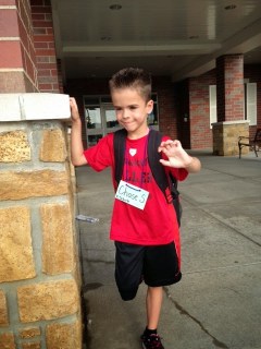 When I went to pick him up that first day, he was smiling from ear to ear. He insisted I put his window down in the car so he could wave goodbye to all of his new friends. I asked him how his first day went, and he said “It was the best day EVER!” What a relief!! Then he started telling me about how his legs cramped at recess and he tried to find somewhere to sit down but when he did, the kids kept stepping on his fingers and it really hurt. Ugh, so heartbreaking for a mom to hear, but the great thing was that this did not seem to hinder his “best day ever.”