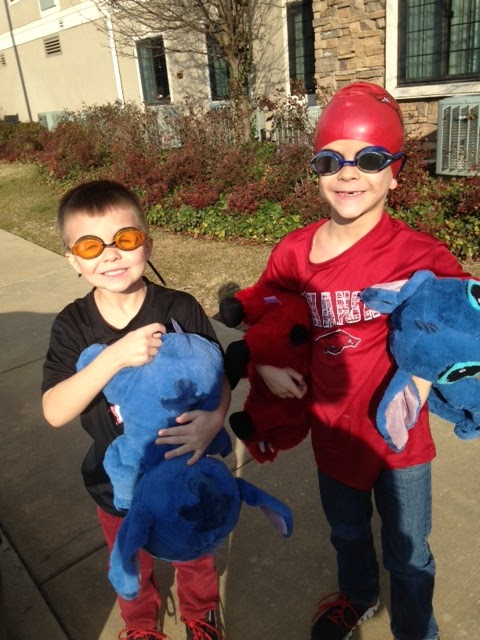 I ordered two thermal swim shirts in hopes that they would help them both stay a little warmer in the water, and we went back for lesson number 2. I believe the shirt helped keep his core warmer, and I could see the determination on his face that this lesson was going to be better. It sure was! The little guy swam half the length of the pool that time! His instructor made sure he took a few more breaks in between swims so there was no need to stop for cramps! There were no tears during this lesson, only toothless grins. His legs did start to cramp up after he got out of the water, so we had to sit down for a little bit, rest, and stretch. He needed a lot of help getting dressed afterwards and we had to walk very slowly to the car. I asked him several times if he needed help or wanted to stop and rest on the way to the car, but he kept saying “No, I’m fine.” His third and fourth lessons the following weeks went just as well, he swam half the length of the pool AND jumped off the diving board and swam to the side of the pool all by himself. I haven’t really been able to figure out an easier way to deal with the muscle fatigue afterwards, other than continuing to help him get dressed, and taking our time walking to the car. A part of me wonders if all of it is worth it, or if it is too much and I shouldn’t be letting him do it, especially when he can barely walk up the stairs and out to the car. Seeing that smile on his face though, and hearing him say he feels stronger and braver afterwards, as long as he wants to, we will keep going back.